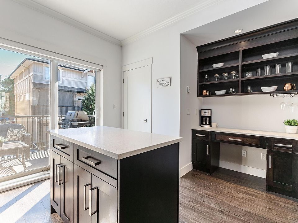 STRATA FEES PAID FOR 1 YEAR!! Albion Station Presents: Beautifully kept 3 Bedroom 3 Bathroom townhouse in quiet area of complex. Main floor features open floorplan with kitchen, dining and living room with cozy electric fireplace. Kitchen features shaker style soft close cabinetry, quartz counters newer stainless steel appliances, and built in desk and bar area. Upstairs you will find spacious primary bedroom, walk through closet, and renovated 5pcs ensuite boasting frameless glass rain shower and double sinks! Two additional bedrooms upstairs and laundry for your convenience. Walk out patio on main floor and fully fenced yard on lower level. New hot water tank and low strata fees. Close to schools, parks and trails!