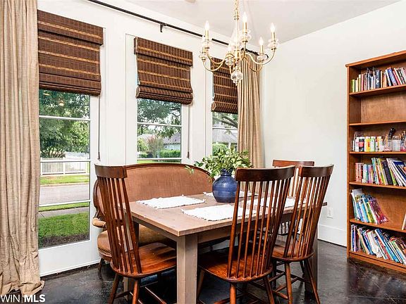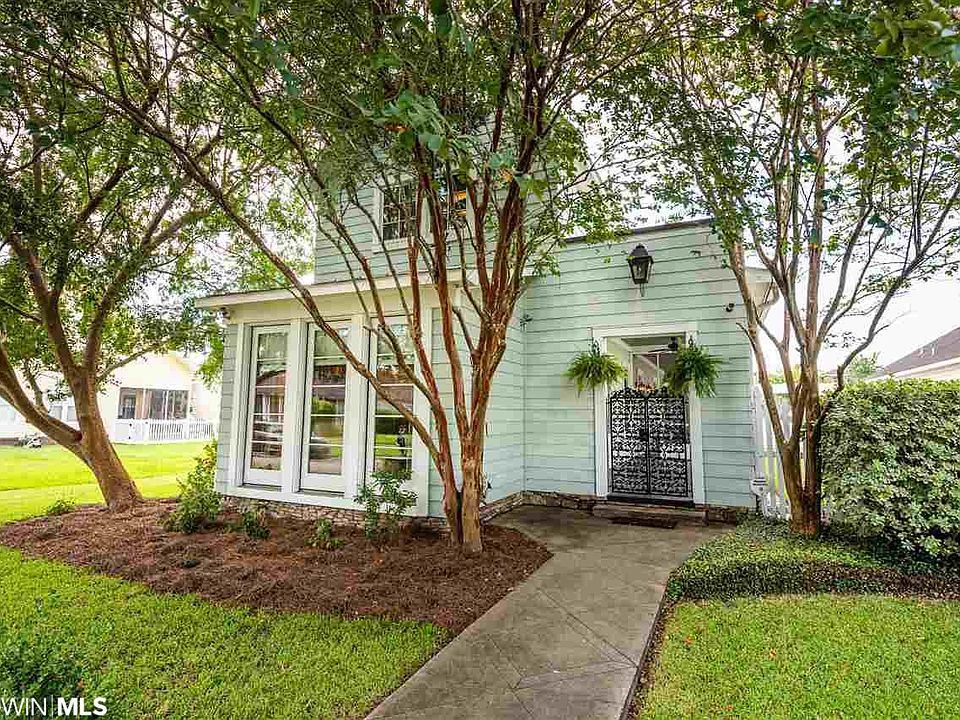 Beautiful custom cottage in Historic Malbis! Fantastic location close to shopping, dining, Infirmary ER (soon-to-be full hospital), and I-10. This home features a private courtyard patio with beautiful iron gate entrance, large screened-in porch with outdoor kitchen and pergola. Back alley driveway & parking, 2-car garage with 4th bedroom & 3rd bath above (perfect for in-laws, college students OR guests). Inside includes an open floor plan with many large windows giving abundant natural light in the living room and dining room. Large master suite is on the main level. Master bathroom features huge walk-in shower with 2 rain shower heads & large master closet. Beautiful kitchen with white cabinets, poured concrete countertops, and stainless steel appliances. Property has custom window treatments and 10' ceilings. Also on the main level is the laundry room with laundry shoot from upstairs, additional storage under the stairs, and half bath for guests! Upstairs, you have 2 bedrooms and a full bathroom with a large landing that could make a perfect homework space or office. This home is a must see! Move-in ready! Space above garage is included in square footage.