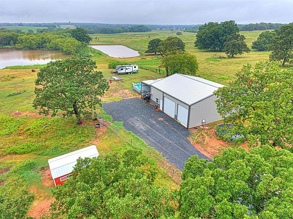 Discover this stunning 40 acres (MOL) nestled in the peaceful countryside of Meeker, Oklahoma. 2024 Build 56x40 metal barndo provides incredible versatility with approximately 1100 square feet of workshop space and approx. 523 square foot of guest quarters featuring two bedrooms and a full bathroom. The thoughtful design includes loft storage, spray foam insulation, and two 220 mini-split systems running on independent breakers for year-round comfort, and a 13x40 lean to. House pad is already built with septic, water, and electric already stubbed out! Additional features include the 4.5-acre goat pen, charming red chicken coop, & hay bottom. Perfect for those seeking to build their ideal homestead, this land offers the ultimate blend of natural beauty and practical amenities. The property's crown jewel is the impressive 6.5 acre (MOL) pond with largemouth bass, crappie, perch ideal for anyone who appreciates serene water views, fishing, and gorgeous sunsets. Duck hunters will appreciate the prime hunting opportunities right on your own land. The property is fully fenced with the exception of only 1/2 the South line fenced. Fiber internet, trash services, well, septic, and electric in place! 30 amp hook up provided as well as direct sewage, electric, and water for your RV! Ready to start fresh in your own slice of paradise? This land is waiting for you to make it home!