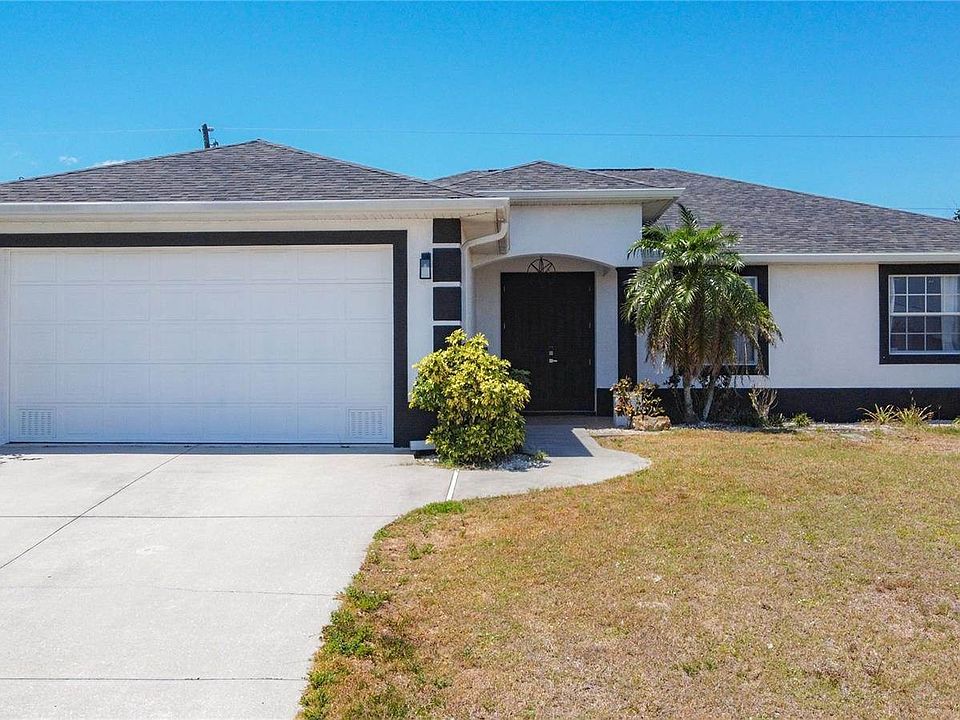 Florida living at its finest! Welcome home to the sought-after community of Rotonda Sands, in sunny Placida, Florida! This COMPLETELY REMODELED 3/2/2 home features a seamless open floor plan, perfect for both everyday living and entertaining. Step inside and you'll immediately notice the modern touches throughout — from the wood plank tile flooring throughout (no carpet, except in closets) to the open concept kitchen, complete with dual breakfast bars, spacious kitchen island, stunning quartz countertops, and a charming barn door that adds style and privacy to the laundry room. The home brings peace of mind with a NEW ROOF and NEW AC installed in 2023, newer double-pane windows equipped with HURRICANE SHUTTERS, and the lot has been elevated out of the flood zone! Retreat to the large primary suite, which offers direct access to the lanai through sliding doors, two generous closets with custom organizers, and a spa-like en suite bathroom featuring a soaking tub and walk-in shower. Outside, enjoy the large backyard — perfect for relaxing or entertaining under the Florida sun - with ample room for a future pool, if desired. Rotonda Shores is known for its privacy and generous space between homes, all while maintaining a low HOA fee of just $125 / year. Located just a short 10-minute drive to the glistening waters of Boca Grande Beach, and close to the shopping, dining, and conveniences of both Englewood and Port Charlotte. No projects here... just move right into this home which truly offers the best of coastal living!