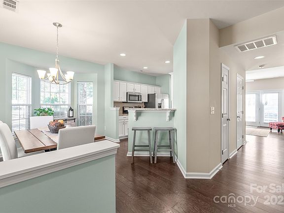 This beautifully updated home offers comfort, style, and peace of mind with major interior renovations completed by the current owner. Interior highlights include gorgeous 5-inch engineered wood flooring throughout the main level, brushed nickel door hardware and cabinet pulls throughout. Kitchen features painted white kitchen cabinets with sleek granite countertops, tile backsplash, stainless steel single-bowl kitchen sink and appliances. Other updates include stylish tile in the downstairs laundry room and full bathrooms with framed mirrors and updated light fixtures. Primary bedroom features large walk-in closet with plenty of storage. HVAC, furnace, and 50-gallon gas water heater were replaced in 2022. New roof in 2020. Outside storage off patio. Walking distance to desirable Blakeney Shopping Center which includes restaurants, shopping, and grocery stores. With timeless finishes and thoughtful updates throughout, this home truly has it all. Don’t miss your chance to make it yours!
