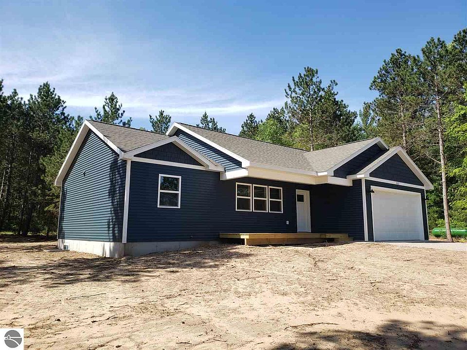 Brand new construction to be built. The single level floor plan is ideal with a private master suite at one end and two spacious bedrooms and a full bath at the other. The open kitchen/living/dining area with vaulted ceilings is perfect for entertaining. Walk out to the large back deck and enjoy the yard surrounded by tall pines for privacy and quiet. This is not a platted subdivision so there is no association to deal with and owners are welcome to build a pole barn or other accessory structure. The enormous full basement is ready to be finished for additional square footage if needed. Located on a paved, county maintained road close to the village of Kingsley and just a short drive to Traverse City, this offers a great blend of country privacy with easy access to everything you might need. Build brand new without all the difficult choices. Just choose a few colors if you like. Photos are a mix of renderings and a recently finished identical home to the one described here.