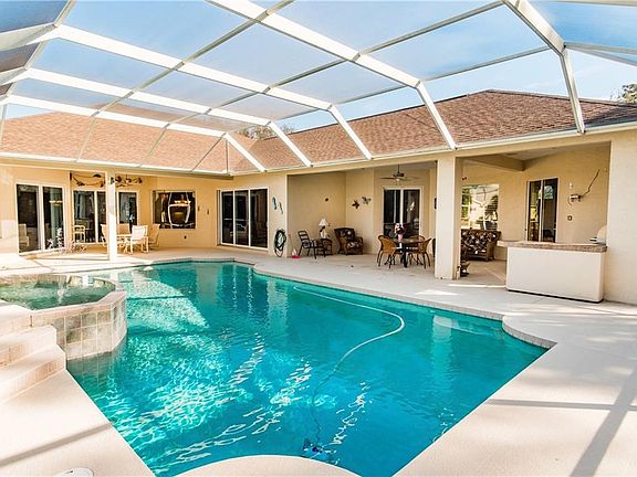 REDUCED- CLASS THROUGHOUT !!!! " Hurry and see one of the nicer homes in River Club. This home has a recently added huge game room with hard wood floors. The kitchen has all newer stainless steel appliances and if that doesn't work you can enjoy the newer outdoor kitchen and fire pit. Hot summer days? Jump in the large very private 9.5 foot deep pool with attached spa or turn the gas heater on when it gets too cold. This home has a newer roof, approx 4 years old, and a new main central air installed June 2017. 90% of the windows have been replaced and are hurricane windows. Large crown molding throughout with tray ceiling. Truly a must see. If you're viewing houses in River Club do not miss this one.