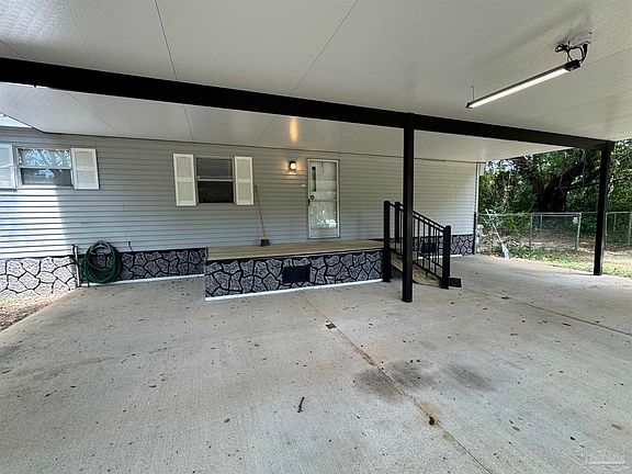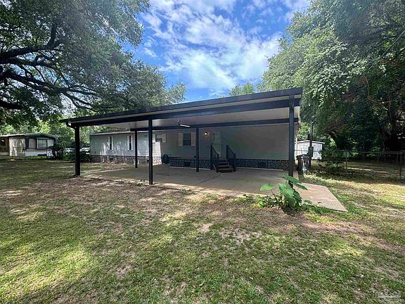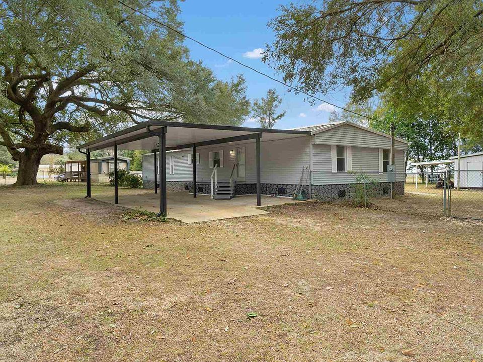 CASH ONLY property. Property does not qualify for traditional financing. Welcome to this meticulously kept 4 bedroom, 4 bathroom custom manufactured home nestled near nine mile road. This residence boasts a seamless blend of comfort and style, featuring carpet and tile throughout. The heart of the home is the custom-built kitchen, ensuring a unique and functional space. The home encompasses a large laundry room, offering convenience and ample storage. With 3 en suites, this property provides a luxurious retreat for family and guests. Plumbing has been upgraded over the years to PVC. The spacious living area and den create an ideal setting for family gatherings or game day events, offering versatility and comfort. A distinctive feature is the custom-built aluminum carport at the front, providing a covered space for homeowners to pull under and unload vehicles without being exposed to the elements. Outdoor living is enhanced by a chain-linked fenced backyard, providing privacy and security. Additionally, a storage shed adds practicality to the property, offering space for tools and equipment. Don't miss the opportunity to make this meticulously maintained home yours – schedule your showing today!