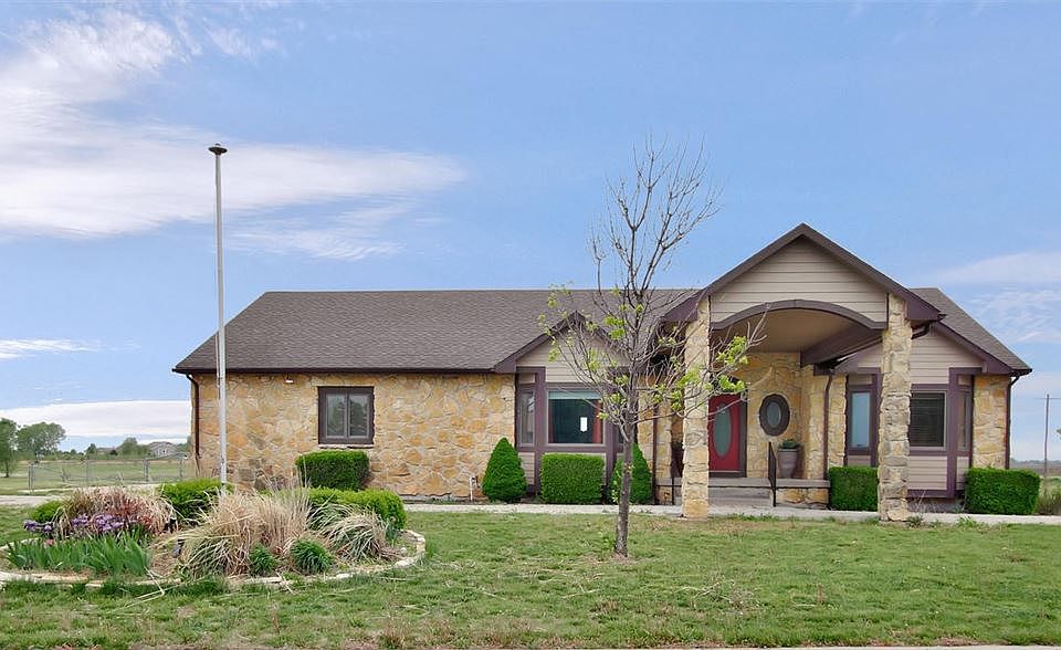 Welcome home to a 5 acre property on the blacktop in the Valley Center School district! Enjoy a beautiful 4 BR, 3-1/2 BA 3021 sq ft ranch home with a sideload garage and fenced backyard, a stocked fishing pond, and a 25' x 32' detached garage with a concrete floor and 220 electric. The well maintained home offers a large eat-in kitchen with granite counter tops and an island, a gas fireplace, a main floor laundry room, mud room, spacious bedrooms, a walkout basement, attached three car garage and a large deck. Entertaining is made easy in the fully finished basement complete with a large rec room, family room, two bedrooms, one bathroom and storage. Conveniently located minutes from I-135 with easy access to Wichita, Valley Center and Newton, this acreage property offers the best of all worlds; take advantage of country living close to the city. Call Kelly today to schedule your private showing.