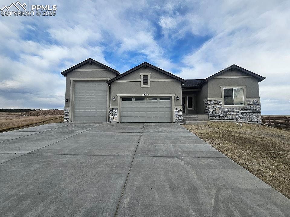 Welcome to the ever-popular Branson floorplan in Timber Ridge, where urban meets luxury. Designed with comfort, convenience, and modern living in mind, this home features a covered patio overlooking your 1/2-acre lot that backs up to the high plains of Colorado. This oversized lot in a cul de sac, facing Pikes Peak, is ideal for outdoor living and family hosting. Key highlights include a HUGE RV Garage, 10-foot ceilings, large windows, and a kitchen with Quartz countertops and an oversized island. The open kitchen, dining, and great room seamlessly connect, with a gas fireplace reaching the ceiling and natural light flooding in. The main level also offers a flex room, a bedroom, and a master suite with a 5-piece bath, walk-in closet, and direct access to the laundry room, with a sink and boot bench. Step outside to the rear patio, where you can enjoy the morning sun and peaceful surroundings. The finished basement includes a rec room, two additional bedrooms, and a 3/4 bath, perfect for family or guests. The upgraded wet bar adds to the entertainment possibilities. The home also features a 2-car oversized garage and a 45-foot RV garage with a 12x14’ door, 220-volt electrical, and a hose bib. High-end finishes include Luxury-Vinyl Plank flooring, raised-height vanities, and full A/C and radon systems. The Metro District fees cover sewer, community fees, and water usage (up to 5,000 gallons). The west-facing front and spacious lot offer privacy and convenience, with easy access to local amenities. The Branson plan blends luxury and practicality, perfect for family life and entertaining. Don’t miss the chance to make this exceptional home yours! Note: Interior photos are from a previously built home and may differ slightly from the actual home. Home is under construction and will be completed April 2025