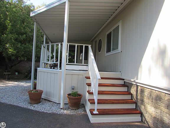 Rare setting in park, home is tucked away by itself, hard to believe you are in a mobile home park! Home is in wonderful condition! Has distance views of Jamestown from the covered front deck. Additionally has a separate screened in sun room to enjoy the summer evenings! Deer proof garden, large attached carport, shed/workshop and small storage unit. Inside is very spacious, abundance of windows plus a skylight give way for a very bright & cheery atmosphere! Floorplan includes an extra room for Office, guest bedroom or den. Large Master Bedroom plus large Master bath. Circular drive for extra parking. Perfect home to just sit back and enjoy!