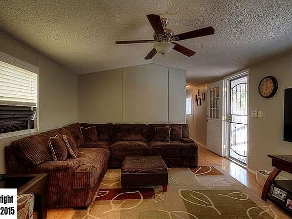 Three Bedrooms, Two Baths, Central Heat, adorable manufactured home in an all age park in the quaint town of Jamestown. Lots of trees and varied terrain in the park make it seem like you are not in a manufactured home park. This unit sits across from Peppermint Lagoon. Open floor plan with vaulted ceiling, laminate flooring, a lovely and functional kitchen, nice sized bedrooms, and updated interior make this the perfect place for you. Close to New Melones Lake, Lake Don Pedro and Yosemite. Water is billed with the space rent. Electric is billed from PG&E and the propane is metered with Proflame and they bill the homeowner.