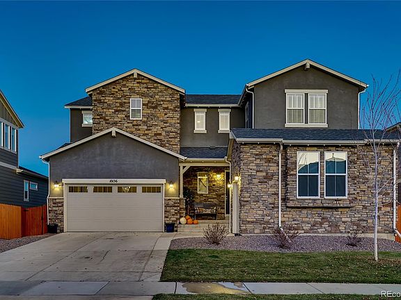 PRICED TO SELL! Get ready to fall in love w/ this home's highly desirable layout & upgraded design features! You are welcomed w/ beautiful carved staircase, & vaulted ceilings that flood the home w/natural light. Gourmet, updated kitchen that any chef would dream of w/ butlers pantry, & formal & informal dining. Main floor suite w/attached full bath. Private office w/french doors. Master suite w/5-piece bath, huge walk-in & adjacent laundry room. Jack & Jill & spacious loft on upper level. Designer lighting, plantain shutters, & custom accent wall additions! Pre-wired speakers in living room & on the spacious covered, treks deck. Cozy gas fire pit perfect for entertaining! The walk-out basement is ready for your custom finish! Just 5 min to both E-470 & I-25. Priced $10-30k below the comps!! This masterpiece is ready for you to call HOME!