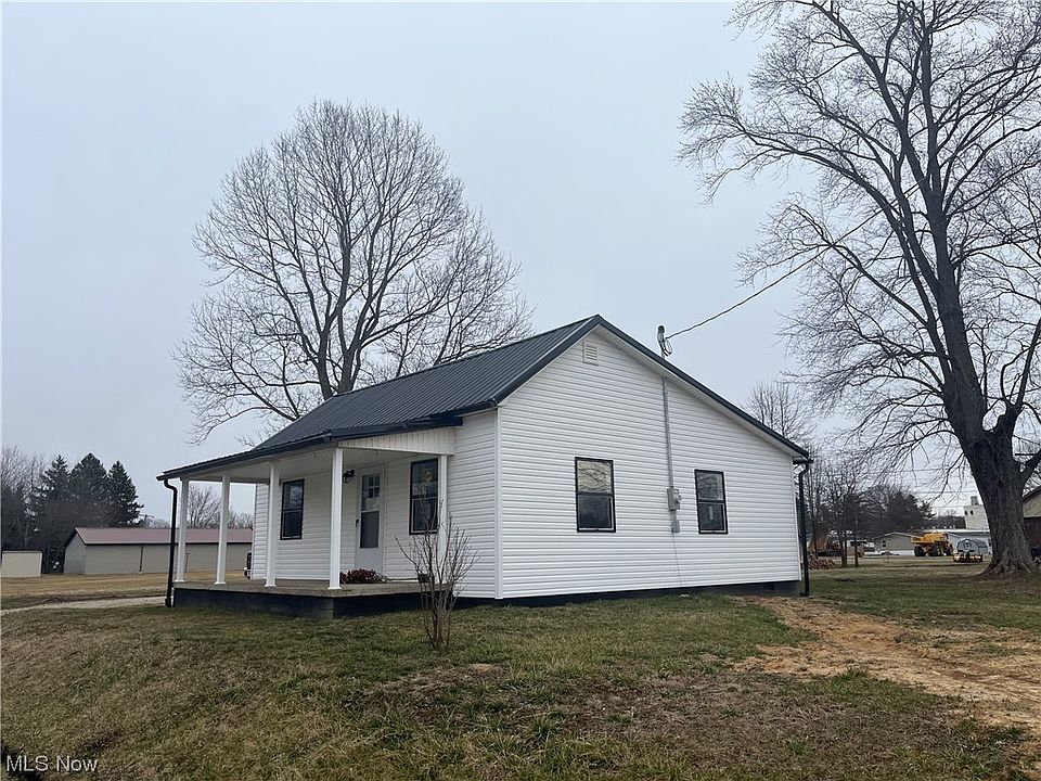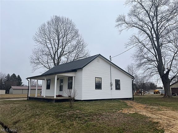 Adorable bungalow on edge of Byesville .. Completely renovated one-floor home w/all new wiring, plumbing, metal roof, replacement windows, floor coverings, vinyl siding, wood deck/porch, heating units cool in the summer & heat in the winter (electric baseboard installed for backup) Large level lot, off street parking.. plenty of room for a garage, dead-end street, private country setting just outside of Byesville. Extra lot included with purchase.