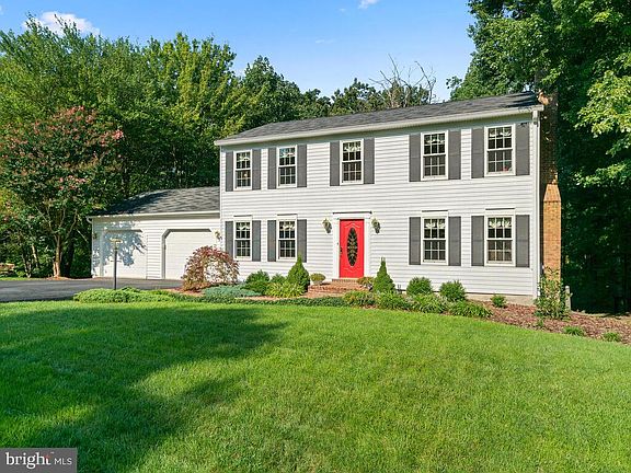 Welcome to 10156 Clearspring Rd, a classic colonial home in the desirable neighborhood of Clearspring Manor. This 4 Bedroom and 3.5 Bath home has been lovingly maintained and enhanced by the original owners. You'll immediately notice that the home sits in a perfect cul-de-sac location. The curb appeal is very impressive with meticulous landscaping and a red front door that just pops. Inside is a neutral and modern pallet of paint colors. The main level is graced with glowing and refinished hardwood flooring. Spacious living room features a fireplace and crown molding. Dining room with shadow box, chair and crown moldings, plus a chandelier. A great room addition boasts a Palladian window, vaulted ceiling, and a sliding door to the deck. The recently upgraded kitchen features granite counters, stainless steel appliances, an island, white cabinetry, subway tiled backsplash, a pantry, and a sliding door to deck. The new Trex deck is the perfect outdoor space you've been waiting for, and backs up to a wooded paradise of trees and the Magruder Branch walking/bike trail. Upgraded powder room. Awaiting you upstairs is a master bedroom with wall-to-wall carpeting, ceiling fan, a walk-in closet, plus a remodeled master bath with tiled floor. Three additional bedrooms, all with carpeting, plus a remodeled bathroom round out the top level. The lower level comes with a large recreation room with wall-to-wall carpeting, a slider to a second deck, a full bath, and washer dryer. This home has an electric heat pump, and is on public water/sewer.