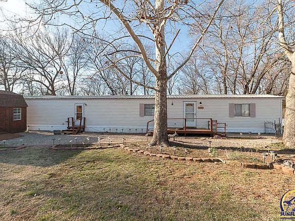 Home for Sale in Ozawkie Kansas! Looking for a cute, clean single family home outside of town thats affordable and turn key, you've found it! This is a manufactured home with new appliances, new sewer line and new water lines. Well maintained home with spacious living room, decorative fireplace, eat-in style kitchen with island. Two large bedrooms and one full bath. Two entrances, two small porches and really brightly lit from natural sunlight. Schedule a showing and see the spring blossoms starting to sprout up. The lawn boasts tulips, Lillies, peonies, and various herbs. The fenced front yard is also the perfect size if buyers have a small four legged pet or two. Located on the furthest road at the edge of the Lakeside Subdivision, this single family owned manufactured home is a perfect spot to settle into. The lot is large and flooded with sunshine making the flower beds and landscaping brighten up the property. The property backs up to Corps grounds so enjoy a wooded backyard and a .12 acre lot. The home is partially fenced and has a cedar shed adjacent to the home for added storage plus a smaller shed in the back as well. Simple living in Jefferson County with motivated sellers so schedule a showing and snatch this property up while its available.