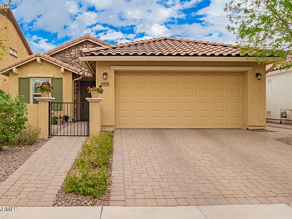 Beautiful single story home with a POOL in the award winning community of Eastmark! Offering 3 beds, 2 baths, and a 2.5 car tandem garage. Great curb appeal with a manicured landscape, paver driveway, & a gated front patio. The fabulous interior showcases vaulted ceilings, plantation shutters, designer paint, tons of natural light, and tile flooring in all the right places. The combined living & dining room is paired with sliding doors to the back! The impressive kitchen boasts SS appliances, quartz counters, mosaic tile backsplash, recessed lighting, a pantry, a breakfast bar, a cozy nook, and wood shaker cabinetry. The main bedroom has an ensuite with dual sinks & a walk-in closet. Outdoor living is found here, too! With a covered patio, travertine, artificial turf, and a sparkling pool, the backyard promises year-round enjoyment. This home is walking distance to BASIS Mesa School & the new Eastmark elementary. SOLAR in place with a 25 yr warranty which began in 2019!