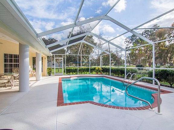 SOLD...Enjoy the gorgeous Southwest sunset views from your lanai and heated pool which will constantly remind you that "there is no place like home." Home is located on the 6th fairway of Oak Hill Golf Club. This home features an open floor plan with the master rinetreat encompassing the entire left side of the home. Master suite has two separate walk-in closets as well as a separate sitting area for a potential nursery, den, or small office. The huge master bath has a large raised soaking tub, dual sinks, linen closet, separate shower, and custom window treatments. The open floor plan with vaulted ceilings allows for great entertaining and easy flow from the kitchen, dining room, living room, great room, and outside patio. There is a breakfast nook with skylight and windows overlooking the pool. The great room can be opened up using the triple slides to bring the outside in! The abundance of natural light in this home is stunning! Bonuses include a central vacuum system, wired security alarm system, whole house and lanai stereo system, new HVAC in 2013, new pool heater 2014. There are ceiling fans in all rooms and dimmer switches on most lights. Curb appeal is phenomenal with a premium irrigation system on a well for extremely low water bills, St. Augustine grass, and concrete curb-a-long borders around well manicured gardens. Enjoy the work station in your oversized 2 car garage. You can truly see the pride in home ownership!