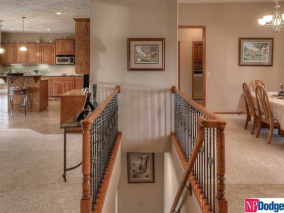 Susan Hancock, M: 402-215-7700, hancockrealestate@gmail.com, www.npdodge.com - Fantastic custom built spacious ranch home on a wooded lot with walkout lower level. The extra large main floor (over 2100 sq ft) features 3BD, 2BATH, 3CAR (8' door) with soaring ceilings, open layout, quartz countertops, walkin pantry, double ovens, stainless steel appliances, island, dinette plus dining room, great room, main floor laundry and covered, composite deck. Bed, bath, family room with wet bar and rec room in the walk out lower level. Too many features to list. MUST SEE! AMA.