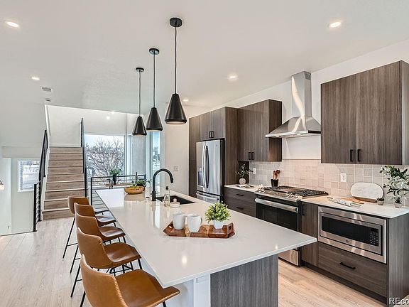 Experience sophisticated modern living in this new community, presenting a community of duplexes meticulously designed with curated finishes and housed in a prime location. Only five units left! With three levels and a rooftop deck, these homes elevate your lifestyle and enjoyment. Each duplex side offers a mirror layout and distinct color schemes. As you enter, you're greeted by an inviting entryway featuring a multi-level atrium and expansive windows that flood the space with natural light. The bonus flex room and convenient powder bath offer versatile space, perfect for an office, gym, or cozy retreat. The second level's open floor plan seamlessly merges the kitchen, living room, and dining area, fostering effortless entertaining or relaxation. The kitchen is complete with an eat-in island and modern appliances, A powder room adds convenience to your daily routine. Thoughtfully located on this level, the sizable primary retreat with ensuite offers a double vanity, large shower, and private water closet for added luxury. Venture to the third level, where two additional bedrooms await, along with a full bathroom, and washer/dryer closet with hookups. A wet bar, accented by a large window, leads to the expansive rooftop deck, where you will create unforgettable memories under the open sky. For extended outdoor enjoyment, the home offers a low maintenance private backyard space with astroturf, covered patio, and fencing. An oversized one-car garage and driveway offer extra storage space and parking.. Conveniently located for a short commute to downtown Denver and easy access to mountains, trails, parks, and nearby resources. Prefer 6-12 month lease. Rent to own potential. Make one of these your new home.