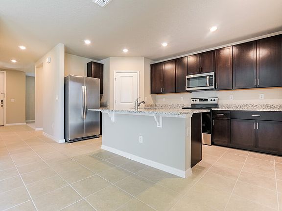 Enjoy a scenic waterfront view from your own backyard in this four-bedroom, two-and-a-half-bathroom rental home in Parrish, FL. This two-story sanctuary has a breezy, open floor plan downstairs with light tile flooring in the living room. The ultra-modern kitchen boasts granite counters and an island with a sink. The eat-in area invites leisurely dining with sliding glass doors for taking your meals outside to the patio. In addition to the living room, you'll have a downstairs flex space. Upstairs, a den gives you even more options. The carpeted main bedroom features an en suite bathroom with a dual sink vanity along with a huge walk-in closet. Laundry is a breeze with the second-floor laundry room. Apply for this home soon.