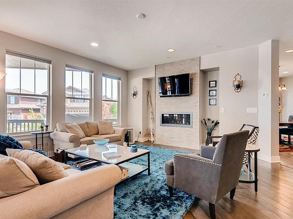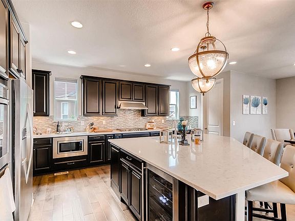 Beautiful 6 Bedroom 5 bath, 4900 SQ foot house in desirable Meridian Village on the Northwest edge of Parker Colorado. Gorgeous gourmet kitchen with Quartz island and modern darker hardwood on main level and basement bar. Basement features full wet-bar (basically an entire kitchen), movie area with surround sound, and bedroom and bathroom. Main floor features a full bedroom and full bathroom for guests or extended family. Also includes gas fireplace,open-plan living room, and covered deck with gas hook up. Upstairs has 4 bedrooms. Masters suite including two sink quartz counter, glass enclosed shower, and oversized tub, and huge walk in closet. Also on top floor, Jr. Suite with full bathroom, two more bedrooms, two sink full bath in hallway and laundry room. Professionally landscaped on oversized end lot with covered deck. Oversized two car garage and hot tub ready. Two miles east of SkyRidge Hospital and I25 on Lincoln Ave. Get to anywhere in town located right off of E470.