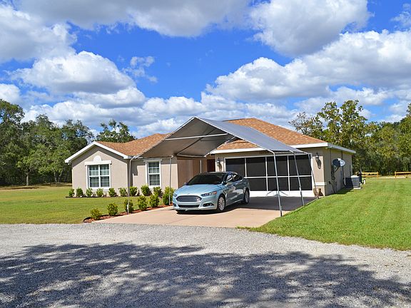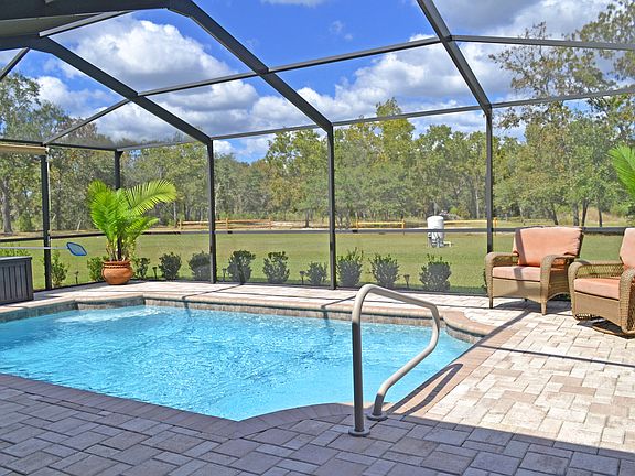 This 2016 home, nestled on an oak-filled 5 acre lot, offers the space, privacy, & freedom of a country home & fuses it with all the modern amenities you desire! Easy commutes to Tampa via Veterans Hwy! Want more space? Owner has additional 5 acres as separate purchase out back for a total of 10 acres! As you enter home & step into the Foyer you immediately appreciate the high ceilings & quality wood laminate flooring found throughout. Stepping into the Great Room you never lose the sense of comfort with the openness and panoramic views of the pool & wooded vastness! Spacious gourmet Kitchen boasts solid wood cabinetry w/ granite countertops, high-quality stainless steel appliances, & pantry! Large Master Suite offers privacy, large walk-in closet, views via its double glass doors & private access to pool! Master Bathroom includes dble vanity w/ granite top, water closet, shower w/ frameless glass door! 3 gracious-sized Guest Bedrooms are served by a full Guest Bathroom! Entertain envious guests in & around the pool on the large, screen enclosed deck and the convenient paved bbq deck right outside! Many more features including an additional detached garage/workshop and deep water well! In addition to enjoying the peace and quiet of having space you'll enjoy the peace of mind and insurance savings by having the latest construction code including hip roof and solid concrete block construction! Very energy efficient with low energy bills! Make an appointment to see this amazing & modern country home today!