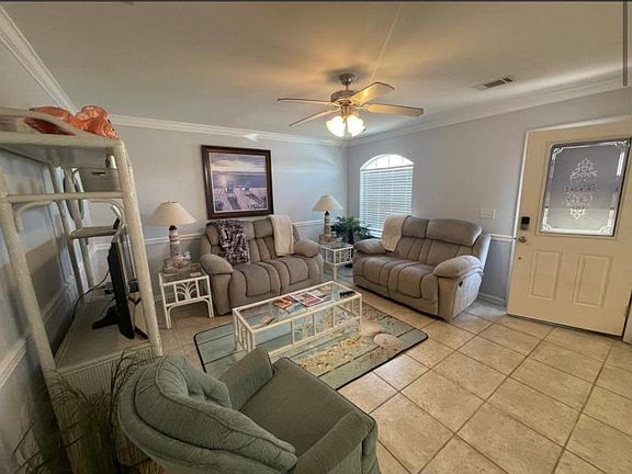 A fully furnished charming 4bd 2ba town-home located in "The Palms". The Palms is located off of 15th St in the heart of Mexico Beach, just minutes from the sandy beach and emerald green waters of the gulf. The ground level features the living room, dining room, kitchen, master bedroom and a full jack and jill bathroom. The three additional bedrooms and second bathroom are located upstairs. 2 designated parking spaces available. **Additional pet deposit required per pet. No smoking allowed.
