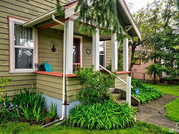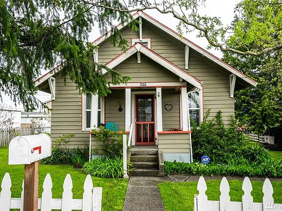 Charming, historic, craftsman-style home in the heart of Anacortes. Updated 1913 home has beautiful, original dark-wood floors, trims, and built-ins. Two bedrooms and a study, open kitchen-dining room design and a bath w/antique claw-foot tub. Front porch for sitting and visiting, a back porch for entertaining, a large well-maintained yard, raised garden beds and stately old trees for shade. Zoned for small business. Separate finished studio and garage. Just blocks to city markets and downtown.
