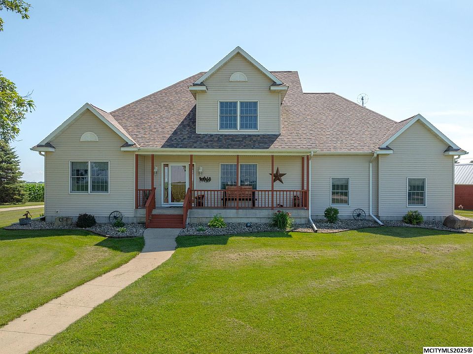 This beautifully maintained home offers the perfect blend of comfort and functionality on approximately 3.5 acres with a fenced area for animals. A covered porch ushers you into a great room with soaring vaulted ceilings and an open floor plan. The main level also offers a laundry room, private office, and a guest bedroom with an attached bath. Upstairs, the primary suite features a large walk-in closet and a private bath. The lower level is a haven for relaxation, featuring a cozy family and game room with in-floor heat. Storage galore and dedicated craft areas ensure a place for every passion. Outdoors, a fantastic shop with three garage doors, a barn, an additional one-stall garage, and a shed support your hobbies. The two-stall attached garage also features in-floor heat with a separate basement entrance. This meticulously cared-for home and its outbuildings offer a unique opportunity on private, multi-use acreage. Don't miss out on this amazing opportunity!