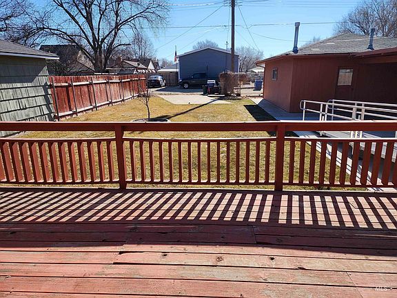 Beautiful and well cared for brick home! Move in ready! Deck, covered patio, attached garage with extra storage above. Detached shop/garage with electricity in back off of alley. RV parking and hook-up! This home even has beautiful hardwood floors under the carpet, if that is your preference!