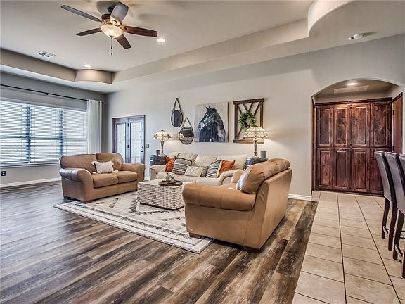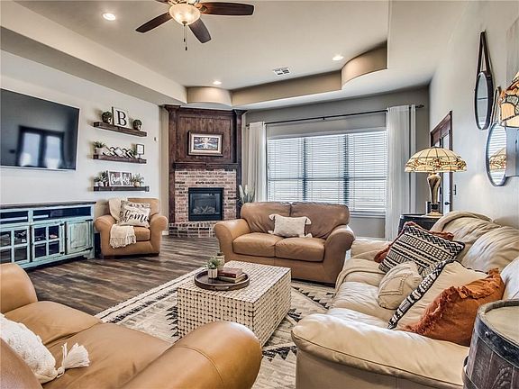 Don't miss out on this Beautiful 4 bed / 2 bath home on almost 1/2 an acre is located in the highly sought after Tuttle school district. Inside you will find tall ceilings w/ rounded tray ceiling. You will LOVE the Wood Barrel ceiling & huge entry door. Recently updated Luxury vinyl plank flooring throughout the entire house, as well as fresh paint. Large living room w/ gas fireplace. Large kitchen has gorgeous custom cabinets, granite countertops, stainless-steel appliances & a gas stove. Spacious bedrooms & tons of extra storage space throughout the house. Master suite comes w/ oversized jetted bathtub, double vanity, walk in shower & walk in closest. Storm shelter is located in the garage floor & has a Nest Smart Home System! Back patio is plumbed & ready for outdoor kitchen. Pass thru 3rd car. Shop OK. East facing large back patio. Home is on high elevation w/ a great view of the city. Centrally located on HW 4 w easy access to Mustang, OKC, Norman, Tri-City.
