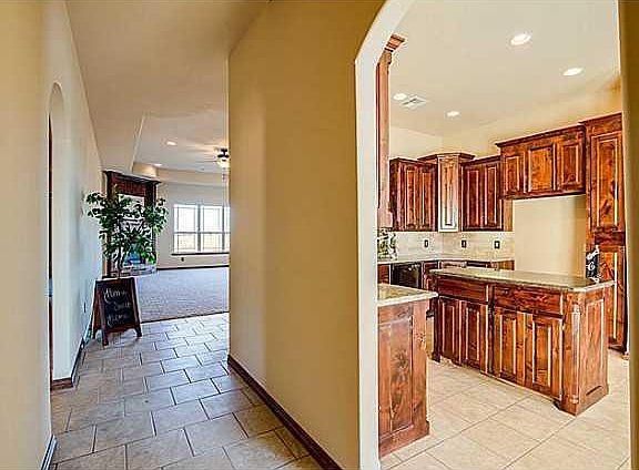 Tall ceilings w/ rounded tray ceiling. Back patio is plumbed & ready for outdoor kitchen. Pass thru 3rd car. Shop OK. Knotty Alder wood work & TONS of wood. You will LOVE the Wood Barrel ceiling & huge entry doors. East facing large back patio. Home is on high elevation with a great view of the city. Centrally located on HW 4 w easy access to Mustang, OKC, Norman, Tri-City. Come see this quality home and ask about the USDA 100% financing.