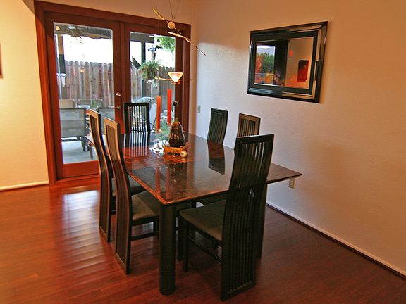 This picturesque property exudes outstanding curb-appeal on a spacious lot in a great neighborhood. The floor plan features formal Living and Dining rooms, and an updated Kitchen open to the separate Family room. The Master Suite features a remodeled bathroom with Italian glass mosaic shower, plus custom closet doors and interiors done by California Closets. The house and grounds have been thoroughly upgraded in recent years from top to bottom, including bamboo and stone floors. The backyard is an entertainer???s paradise with a large custom Tigerwood deck, side patio ideal for outdoor dining, expansive grassy area, multiple fruit trees, and plenty of privacy. Three car garage with direct access to living area, plus oversized driveway.