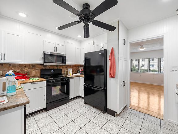 Eat-in kitchen with ample cabinet storage, full-size appliances, and room for a breakfast nook or dining table.