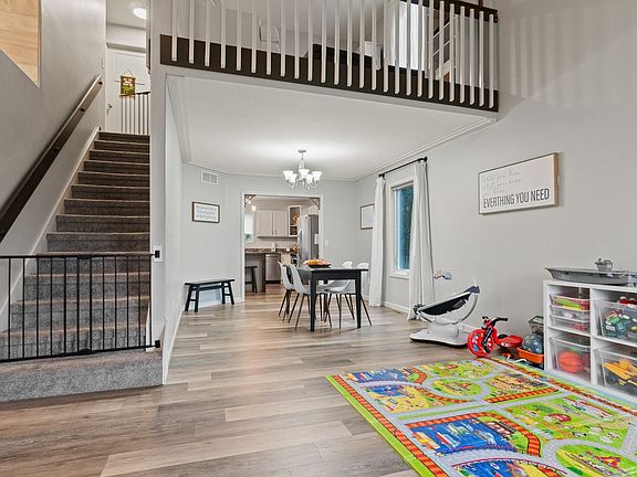 Don't miss your chance to own this beautiful home.  It has over 3000 square feet of finished living space.  It's so open and updated.  The newer luxury vinyl plank floors, open entry with shiplap walls, neutral colors, and open concept are just the beginning.  The eat in kitchen is bright with a great butcher block island, granite countertops and a wonderful custom backsplash. There is also a separate dining area. There are two living spaces on the main level with a beautiful brick fireplace in the family room. Upstairs you will find 3 nice sized bedrooms as well as a loft that could be made into a 4th bedroom. The owners suite even has a barn door entry to the walk in closet. If this isn't enough space, head on down to the HUGE finished basement with high ceilings. Out back there is a wonderful deck and a fenced in yard with a fire pit. All of this and location too!  The home sits on a cul-de-sac in a lovely neighborhood in Southwest Allen County schools and is convenient to shopping, restaurants, and I-69.