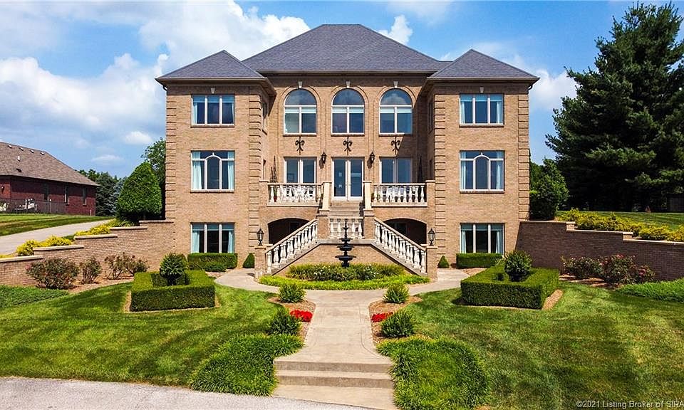 Exquisite custom-built residence with breathtaking views of the downtown Louisville skyline & surrounding wooded knobs! Situated in the private gated community of Canyonlands, the home was crafted with the finest of materials & attention to detail throughout. Whether entering from the grand staircase or the rear foyer, you'll find the design & layout to be optimum for entertaining & everyday comfort. The main level consists of center great room with fireplace & built-ins, office/study, guest powder room, elegant formal dining room with butler's pantry, living room/den with fireplace, huge eat-in kitchen with abundance of cabinetry, center island, raised breakfast bar & sunny dining area. Rear hallway leads to storage closets, full bath/laundry room combination, 3 car garage access & screened patio--perfect for al fresco dining! Two separate staircases lead to the second level, where you'll find a master suite that is truly a lap of luxury! Spectacular views from the bedroom, office/den/nursery, and spa-like bathroom, which will be a favorite retreat for relaxation. Walk-in wardrobe closet leads to huge laundry room with sink & work space. Two additional bedrooms boast walk-in closets & access to full & half bath. Walkout LL offers game/rec room with wet bar, home theater with tiered seating, two additional bedrooms with views (no closet in one), full bathroom, covered terrace access, exercise room, safe/storm room and plenty of storage! Seller providing 1-year home warranty!