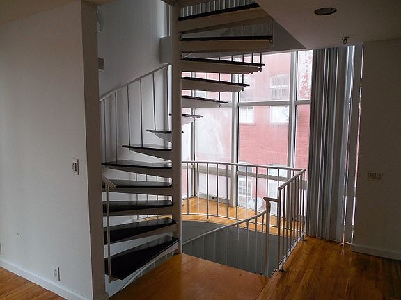 Unique 800 SF 1- or 2-bedroom triplex townhouse available February 1. Open loft-like floors can be utilized in various ways and adaptable to a 2-bedroom use. Recently renovated kitchen has stone countertops, microwave oven and dishwasher. Two brand new full bathrooms. Spiral staircase leads up to all levels. Hardwood floors and central A/C throughout. Private garage parking entered at ground level. Stand-alone building is part of the 36-unit Columbus Park Properties building next door. Laundry services available within larger building. Near Columbus Park, 9th Street light-rail station, and bus stops (both local and to NYC Port Authority). No-pet policy. On-site parking available if desired for an additional fee. PSE&G separate. Broker fee.