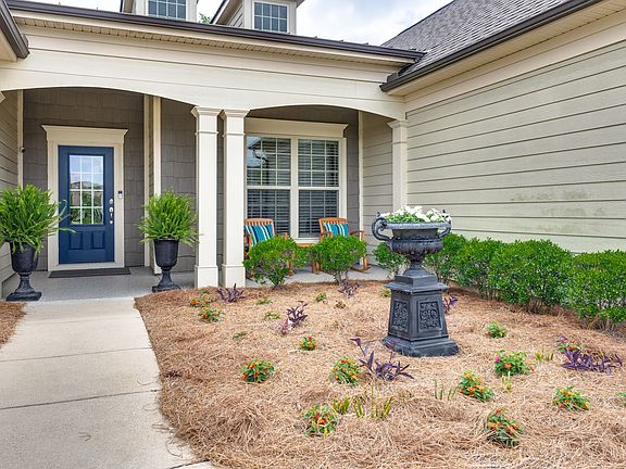 This Dunwoody plan on a premium tree lined lot is packed with wonderful upgrades and features. Beautiful upgraded kitchen with Glacier Grey cabinets, quartz countertops, KitchenAid gas cooktop and double ovens. The refrigerator and washer/dryer are included. The flex room has glass doors. All laminate flooring, no carpet! Home has crown molding, wainscotting, & cased windows. The guest suite has upgraded walk-in shower. The owner's suite has a trey ceiling, framless tile shower, vanity area, and custom closet by California Closets. The laundry room has custom cabinets. The garage has a 4' extension with walk-up stairs to attic & epoxied floor. Relax on your covered patio and enjoy your private wooded backyard. The patio is epoxied & has a gas line. The yard is fenced with irrigation.