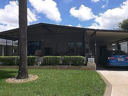This updated 2 Bed 2 Bath home in deluxe 55 plus park has huge shed, new cabinets, laminate flooring, windows, and more. Full front lanai is a perfect place to just relax or entertain. Open kitchen with eating space with plenty of cabinets and plenty of room for two chefs. Light, Bright, and Well Maintained Home.