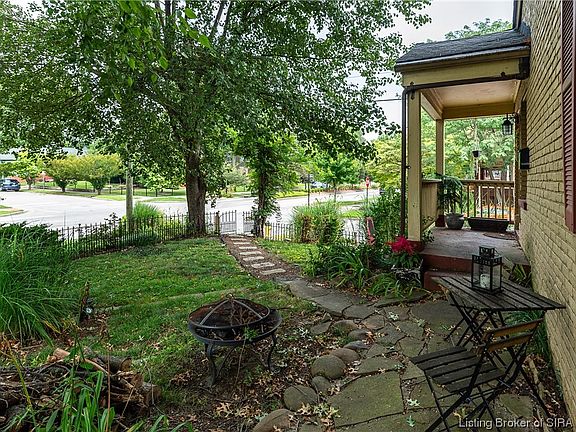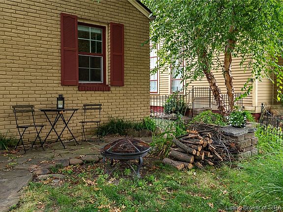 Location, location, location! Don’t miss this Downtown New Albany Indiana Home. Nestled on a nicely landscaped corner lot in Mansion Row, this 1.5 story, 3 bedroom, 2 full bathroom home has over 1800 square feet of living space. The main floor offers a dining room, living room, and huge kitchen with an island, breakfast bar with seating plus a 2nd peninsula with additional bar seating. The main floor also features 2 nice sized bedrooms and a full bathroom. The second floor is the primary bedroom suite with soaring vaulted ceilings, a sitting area, and an outdoor balcony overlooking the private courtyard. The luxurious bathroom has a dual sink vanity, jetted tub, plus a separate shower. There is a spacious walk-in closet, complete with built-ins and the laundry facility. The washer and dryer in the walk-in closet make this a very convenient floor plan! Also, do not miss the attic storage area located off the primary bedroom!