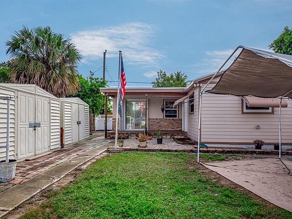 Wonderful two bedroom single family home on a dead end street. No homeowners fee or restrictions. All windows are impact glass, roof and water heater replaced in 2018! A/C replaced in 2015. Eat-in Kitchen features upgraded granite countertops and beautiful real wood vintage cabinets. Huge updated bathroom has spacious walk-in shower, granite topped wood vanity with dual sinks. Storage sheds on property to store your toys. Lots of parking spaces. Don't delay, Call today!