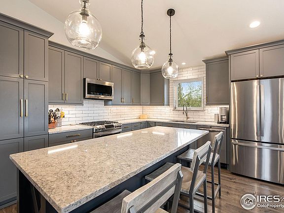 Welcome home to an entertainers dream! This inviting and beautifully upgraded  home has been thoughtfully updated throughout. The open & bright chefs kitchen features newer stainless steel appliances, quartz countertops and is tastefully finished with Restoration Hardware pulls. Enjoy summer nights stargazing on the recently updated trex deck overlooking the expansive backyard. Enjoy winter nights relaxing in the top of the line Bullfrog hot tub (negotiable). Back inside, the spacious living room features newer energy efficient windows and upgraded Roman Shades. Located in the highly sought after Longmont Estates neighborhood, this home is just a short walk from Twin Peaks Golf Course where you can enjoy mountain views. You won't have to walk though to get that view, enjoy those same mountain views right from the comfort of your new home as well. The downstairs great room and flex space offer a brick wood burning fireplace, perfect for gathering around. Also on the lower level are 2 more generously sized bedrooms, perfect for hobby rooms, bedrooms, entertaining and more.This home offers nearly every upgrade and update a buyer could want-a truly special home! And no HOA!