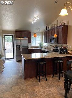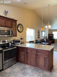 - RoomKitchenFeatures: Pantry, Disposal, Microwave, Vaulted Ceiling(s), Eat Bar