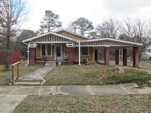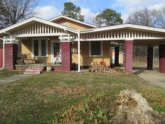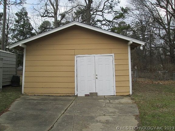 Large home on west side of Muskogee, sits on over half an acre corner lot. Lots of space for your family. Large bedrooms. Tons of storage throughout the house. There is a room that could be an office, playroom or sewing room. Formal dining and eating area in kitchen. Good size laundry room. Nice screened in back porch to enjoy mornings or evenings. Attic fan in hallway. Hardwood floors under carpet. Mature trees in big back and side yard. Storage building and shed.