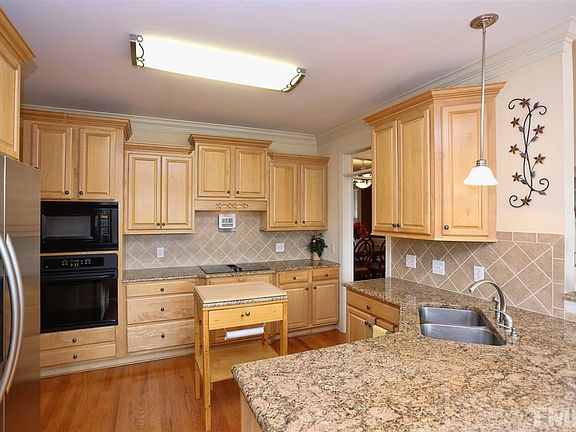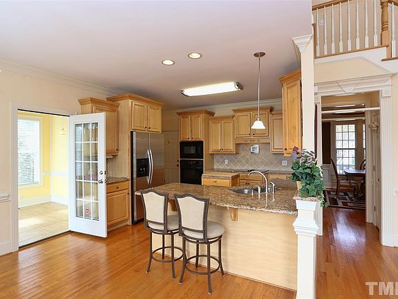 Stunning home only 11mins to downtown Raleigh & 5mi. to Fuquay! Extensive upgrades, gleaming hardwoods, crown molding, wainscoting, tray ceilings & more! Open floor plan has vaulted family room w/ gas log FP + flexible sunroom could be office! Gorgeous kitchen w/ granite, tile backsplash, under-cab lighting & double pantry! 1st fl master has tray ceiling, WIC & amazing bath w/ dual vanity, whirlpool, oversized shower & ceramic tile. Bonus w/ closet could be 4th BR! Deck overlooks huge flat .75acre yard!