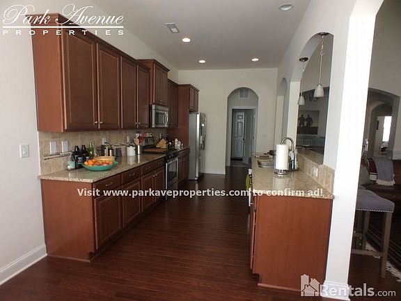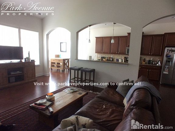 Upgrades such as arched passageways, crown and wainscot moldings, wood flooring and vaulted ceilings make this Craftsman style home a must-see! Features include a formal dining room and a great room accented with a corner fireplace, both ideal spaces for entertaining. The kitchen with a breakfast area boasts stainless steel appliances, granite counter tops, castled cabinets and a tile backsplash, plus a pantry and laundry room for extra storage space. The master suite offers a deluxe bath complete with a dual-sink vanity, a garden tub and a fully tiled shower. This home has front and rear covered porches to relax outdoors. Lawn care is included. Community amenities include a pool, a gym and a clubhouse.