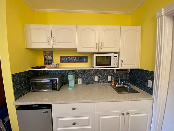 Looking for the perfect AFFORDABLE hide-away in Key West? Located in a remodeled Victorian Home - this guest room is just perfect for two and has a pool in the backyard! This guest room is cozy (the size of a small hotel room, 10'X12.5' plus bathroom) with a QUEEN size bed but is so much better than a hotel room. We provide high quality cotton sheets and thick, luxurious towels. We offer a studio kitchen with apartment sized fridge, microwave, toaster oven, coffee maker, two burner cook top, blender, and everything you'll need to cook and serve a romantic meal. It is nice to be able to make a sandwich or picnic to take to the beach! There is a wonderful table just out the back door if you would like to eat under the palm trees.