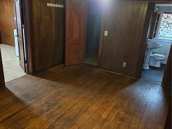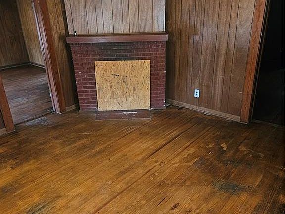 Investor alert! This one-story home offers a covered front porch, mature trees, and a spacious lot, providing privacy and potential. The exterior features a large backyard, perfect for outdoor living or expansion. Inside, you’ll find hardwood floors, wood-paneled walls, and a fireplace in living room. The kitchen includes vintage cabinetry, while the bathroom has a classic pedestal sink and tiled walls. Bring your vision and restore this home to its full potential! Ideal for investors or those looking for a project in a peaceful rural setting. Schedule your showing today! The ceiling height in the entire property is below 7ft. Please note there appears to be 2 tombstones on the property that could indicate that it is a graveyard.