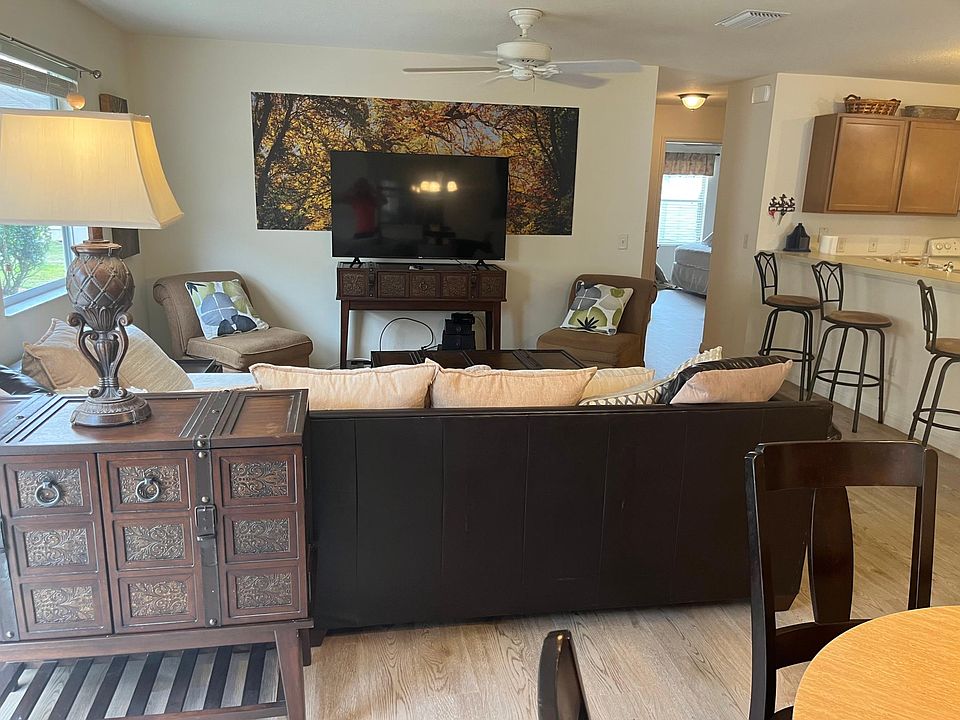 Fully furnished and ready to move in The Village of Hemingway. 2 bed and 2 bath. Enclosed lanai. Comfortably furnished. Pack your clothes and move on in. Come experience the Villages and see what the Buzz is all about! Long term lease at $2,000/mo. For only $50 add on a LIfestyleID to play golf, tennis, pickle ball, billiards, basketball, and all the other amenities available at all Recreation Centers. Enjoy live entertainment 365 nights a year at the 4 Town Squares. Go to events, play cards, or choose to stay in and enjoy the peace and quiet in the privacy of the villa. The choices abound and there is plenty to do. The Villages is Disney for adults. This villa is a great way to visit and experience The Villages in a try before you buy kind of way! Hope to hear from you soon! Available March 3. Available Long Term at $2000/mo plus electric/internet/cable. Lawn service included. One-time $50 fee for temporary resident pass per couple for all The Villages amenities.