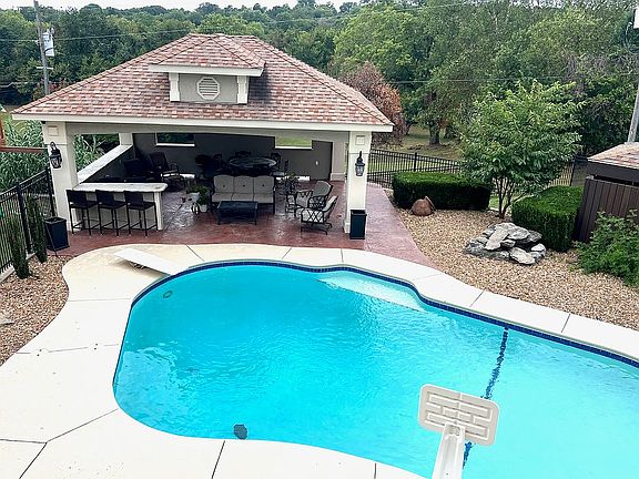 Explore the luxury and space of this two-story home, boasting five bedrooms and three full bathrooms. The residence offers numerous inviting spaces for relaxation or hosting, including two upstairs living rooms, a welcoming front porch, and a back deck with a breathtaking pool view, complemented by a covered patio. A cozy living room downstairs provides additional space. The John Deere garage, along with two extra storage areas, ensures ample room for all your storage needs. Beyond the fenced pool area lies a basketball court, with a concrete slab ideal for basketball, scooter riding, or evenings by the fire pit. A highlight of this home is its prime location, situated less than half a mile from Webb City High School and within a five-minute drive of various restaurants, Walgreens, and Walmart.