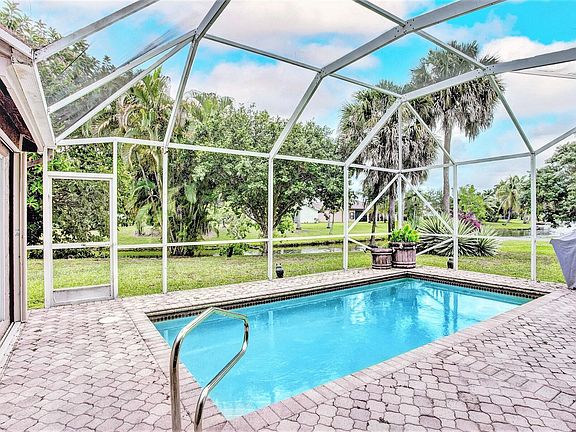 Lovely waterfront 3 BR + den, 2 bath, 2 car garage pool home on canal adjoining Lake Wellington. Heated pool, paver patio, large lanai & screen enclosure. Accordion shutters & storm garage door. Open & bright floor plan with high flat ceilings, freshly painted inside & out, updated master bathroom, huge master closet, totally renovated guest bathroom, new wood look vinyl flooring in all bedrooms, & tile in all main living areas. Covered front entry with double doors & transom windows leading to large LR with adjoining DR viewing pool & canal. Kitchen has breakfast bar, large pantry, & opens to family room, den & pool. Quiet community with low HOA fees & great Wellington Schools. Walk to shopping & dining. Close to Equestrian show grounds & Polo. Minutes from area beaches & PBIA.