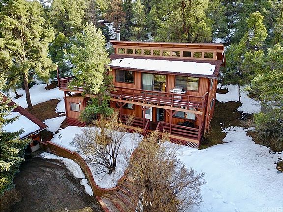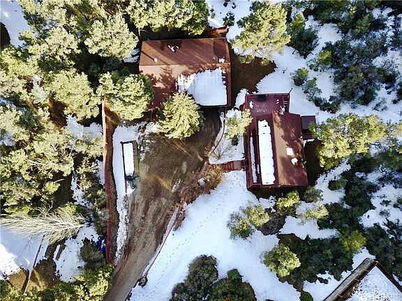 Extremely rare corner lot home located in Pinon Pines Estates. Located at the end of a cul-de-sac and backing up to the forest. This 2 story, ranch style home features 2 Bed, 1.5 Bath with 2 wrap around decks. NEWER ROOF!! Newer heating system!!! Both bathrooms tastefully remodeled. Kitchen has been remodeled which includes new countertops. Family room boasts tall ceiling with windows all throughout providing plenty of natural light. Wrap around decks complete with large patio area to take in the incredible views. Newer above ground spa behind the home with gorgeous views of the forest. Large lot filled with pine trees and RV parking. VERY LARGE 12 CAR GARAGE. Perfect for those who need plenty of garage and or working space. Very rare HUGE garage with area for car lift, large storage area in attic, fully drywalled, 4 ceiling fans, air compressor piped through with external compressor room, insulated garage door, and florescent lighting throughout. This estate won't last and truly is a rare gem.
