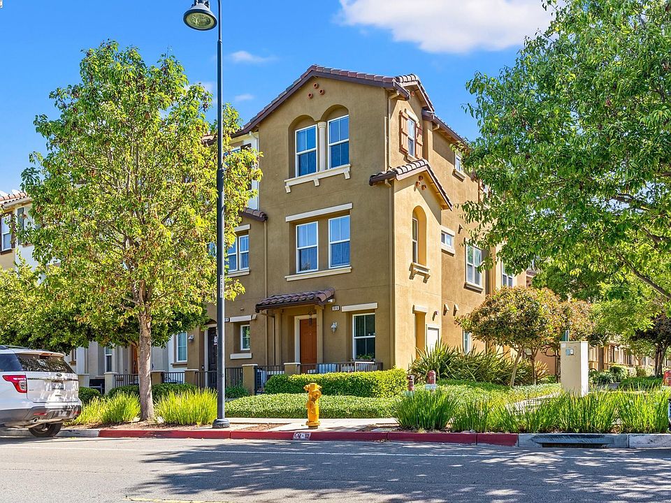 This exquisite 3-level townhome boasts 3 bedrooms and 3.5 bathrooms with 1853 square feet of living space. Located on a corner lot, it ensures privacy and natural light from 3 sides. The entry level features a living room with a half-bathroom, laundry room and access to a 2 car garage. The 2nd level consists of a large gourmet kitchen with plenty of cabinet space, granite counter tops and tile flooring. Stainless steel appliances include: stove, microwave, dishwasher and refrigerator. Off the kitchen is a combination dining area and cozy family room with beautiful wood flooring. A spacious bedroom and full bathroom complete this floor. The top floor has 2 bedrooms, each accompanied by its own ensuite bathroom. The large master suite, features a walk-in closet and additional closet with mirrored doors. Master bathroom includes double sinks, separate shower & tub. This beautiful neighborhood with scenic pathway, park & playground is conveniently located to downtown and BART with easy commute to South Bay, East Bay & SF. Property eligible for a $10K grant or for first time buyers a $21,993 credit towards your loan for a lower interest rate.